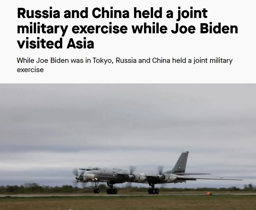 俄罗斯国防部并称,中俄两国飞机在飞行期间严格按照国际法律的规定,没有侵犯他国领空。本次行动为中俄两国2022年军事合作架构内的活动,并不针对第三国。