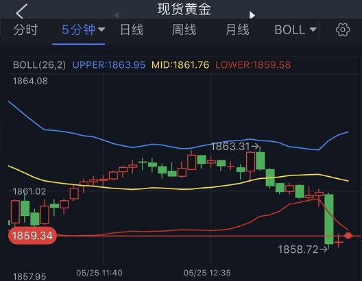 香港时间13:53,现货黄金报1859.34美元/盎司。