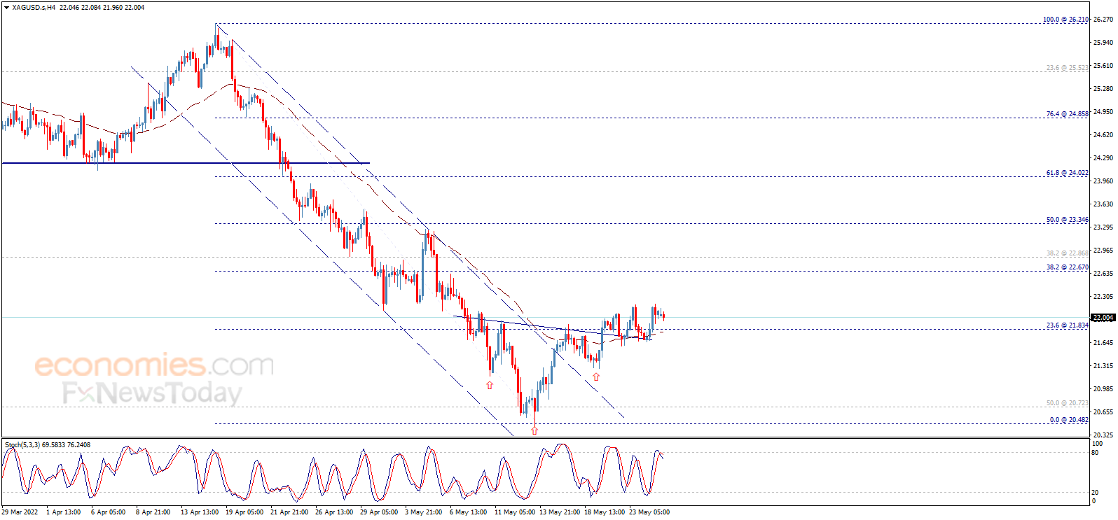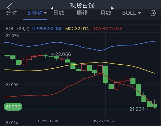 24K99讯 周三(5月25日)亚市尾盘,现货白银短线加速下滑,银价目前跌至21.95美元/盎司附近。知名财经资讯网站Economies.com周三最新撰文,对日内白银走势进行前瞻分析。