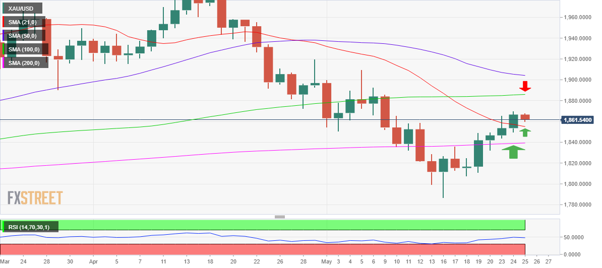 24K99讯 周三(5月25日)欧市早盘,现货黄金短线一波跳水,金价逼近1855美元/盎司水平,日内大跌逾10美元。知名财经网站FXStreet分析师Dhwani Mehta周三最新撰文,对金价走势进行分析。本交易日投资者聚焦美联储会议纪要,若措辞相对鸽派,美元可能受到打压,从而推动金价走强。