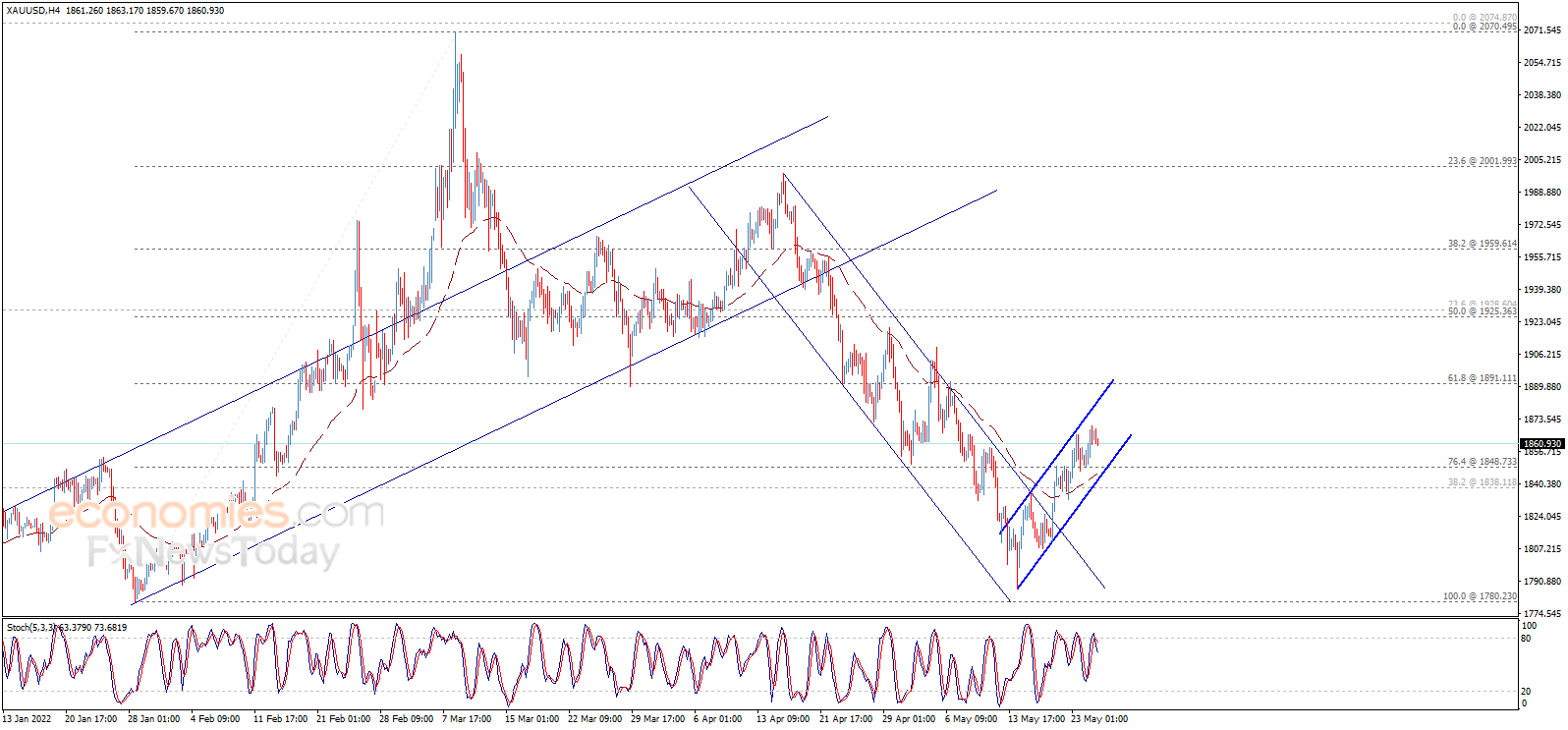 (现货黄金4小时图 来源:Economies.com)