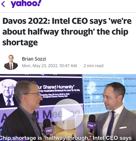 基辛格周一(5月23日)接受雅虎财经(Yahoo Finance)采访时说道,芯片短缺情况缓解了一半。