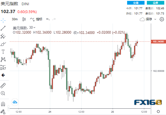 (美指30分钟走势图,来源:FX168)