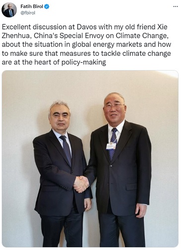 比罗尔本人也在当天的推文中表示,“在达沃斯,我与老朋友、中国气候变化事务特使解振华,就全球能源市场形势以及如何确保应对气候变化的措施成为政策制定的核心进行了精彩的讨论。”