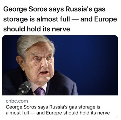 索罗斯周一写道:“这就是普京上季所做的,他把天然气储存起来,而不是供应给欧洲。这造成了短缺,提高了价格,让他赚了很多钱,但他的谈判地位并不像他假装的那么强。”