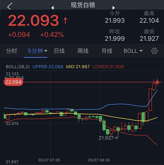 香港时间10:10,现货白银22.09美元/盎司。