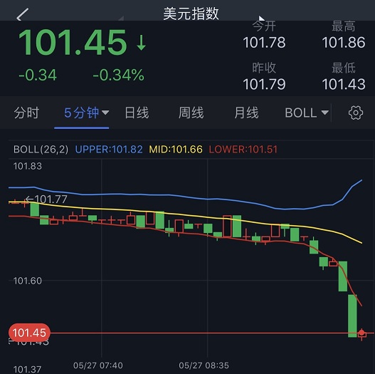 (美元指数5分钟图 来源:24K99)
