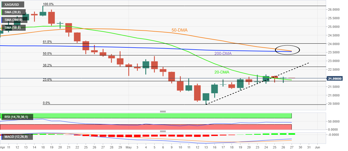 24K99讯 周五(5月27日)亚市盘中,受美元回落提振,现货白银短线急涨,目前银价升至22.10美元/盎司附近。知名财经网站FXStreet分析师Anil Panchal最新撰文,对银价技术前景进行分析。Panchal指出,假如银价突破关键水平22.50美元/盎司,后市有望迎来大涨。