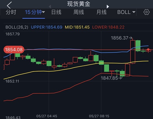 香港时间10:59,现货黄金报1853.67美元/盎司。