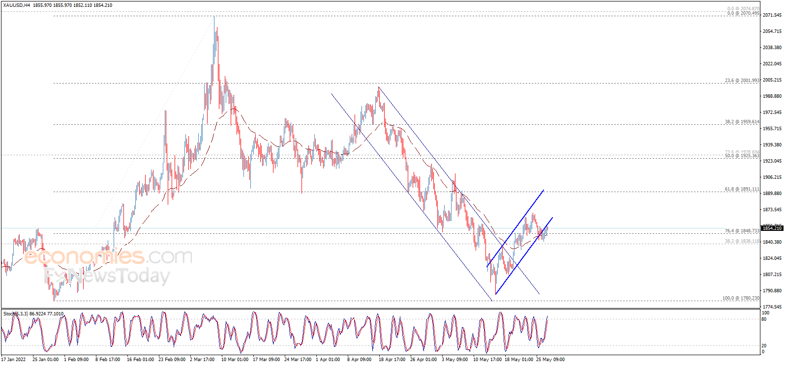 (现货黄金4小时图 来源:Economies.com)