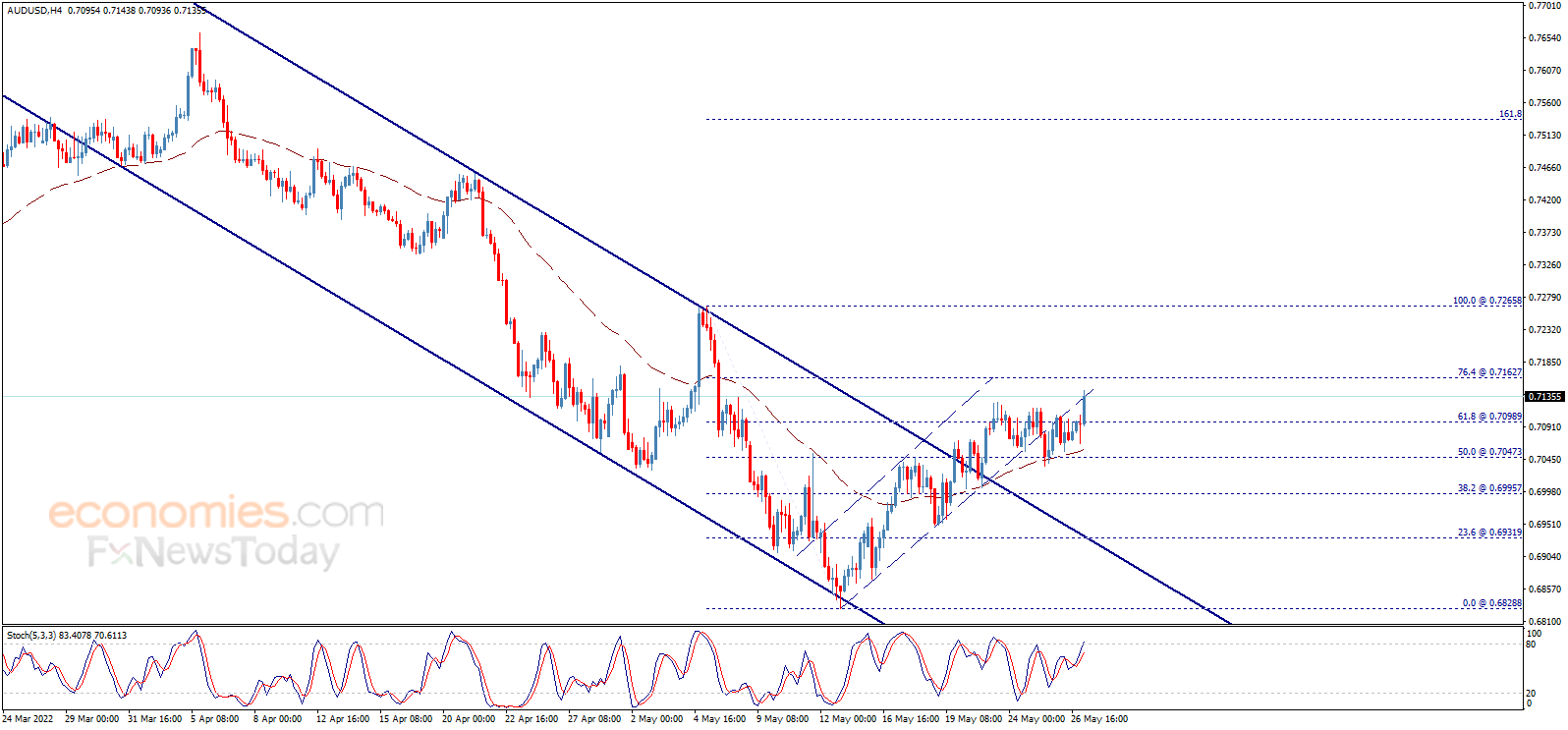 因此看涨趋势仍将在未来几个交易日占据主导地位。从4小时图来看,EMA 50指标对澳元/美元构成支撑。只要保持在0.7100上方,那么看涨预期仍将有效。