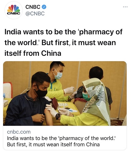 但印度规模420亿美元的制药行业,严重依赖中国的关键活性药物成分或原料药(API)。