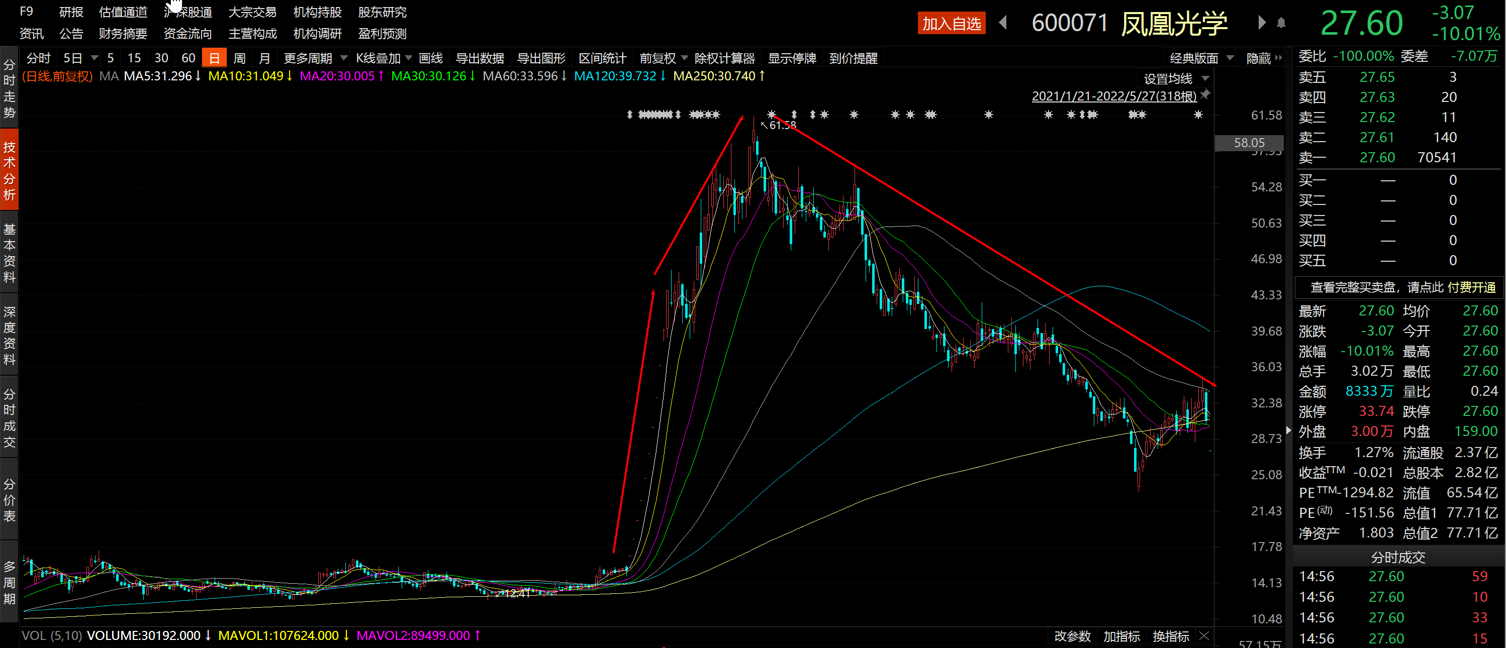 凤凰光学27日一字跌停,近两个交易日跌幅累计超18%。