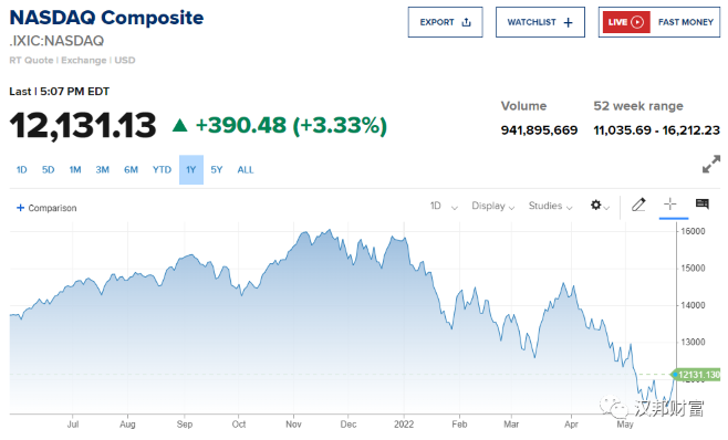 纳斯达克综合指数以12131.13收盘,较上周上涨6.84%。