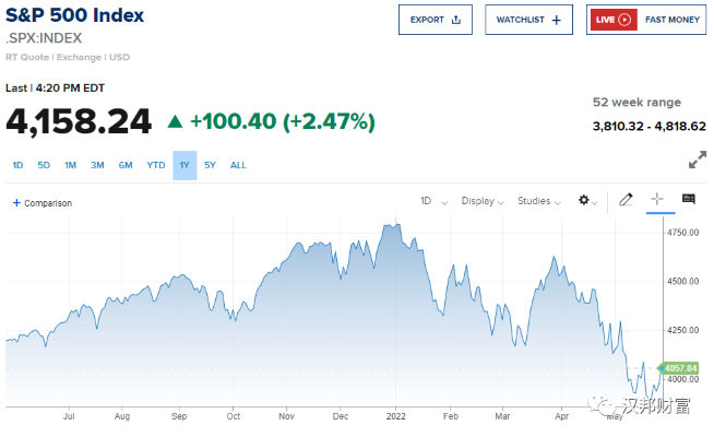 本周五标准普尔500指数以4158.24收盘,较上周上涨6.58%。