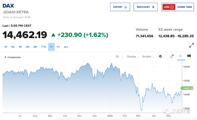 本周五,德国DAX 30指数以14462.19收盘,较上周上涨3.44%。