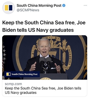 拜登表示:“你们将捍卫国际航行准则,为自由开放的印太提供保障,确保南海及其他地区的航行自由,确保海上航道保持安全和开放。”