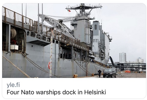 据芬兰广播公司报道,芬兰海军军官Jussi Jamsén表示,芬兰5月18日已申请加入北约,此次美德法三国军舰的访问是对芬兰的支持。