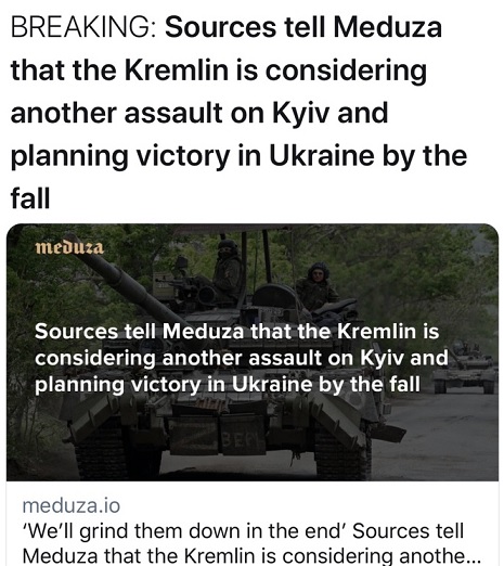 消息人士告诉Meduza,俄罗斯在乌东地区的进展,加之莫斯科认为自己能够在消耗战中获胜,让普京政府重新燃起希望,认为年底前在乌克兰可能取得全面胜利。