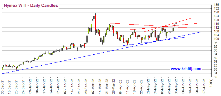 Kshitij咨询服务团队在文章中写道,布伦特原油期货和WTI原油期货已经突破各自的阻力位,在短期内有望分别进一步涨向125美元/盎司和116美元/盎司。今日贵金属价格也有所上涨。黄金期货价格需要超过1875美元/盎司,以进一步向上测试1925-1920美元/盎司。