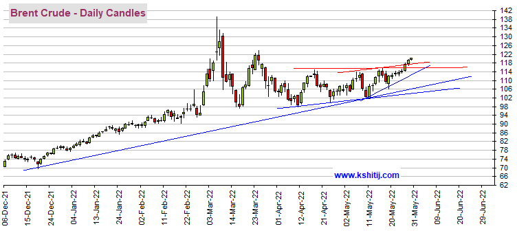 原油方面,Kshitij咨询服务团队表示,布伦特原油期货和WTI原油期货分别突破120美元/桶和112美元/桶的阻力位,并继续走高。油价前景看涨。只要保持在120美元/桶和112美元/桶上方,那么布油和WTI原油短期内分别存在分别涨向125美元/桶和116美元/桶的空间。