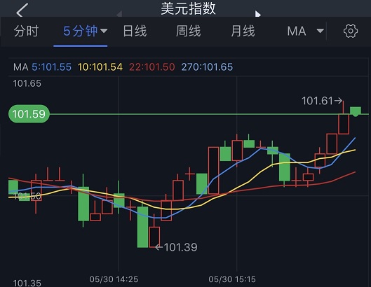(美元指数5分钟图 来源:FX168)