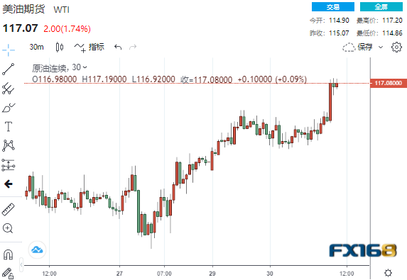 (美油期货30分钟走势图,来源:FX168)