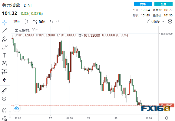 (美元指数30分钟走势图,来源:FX168)