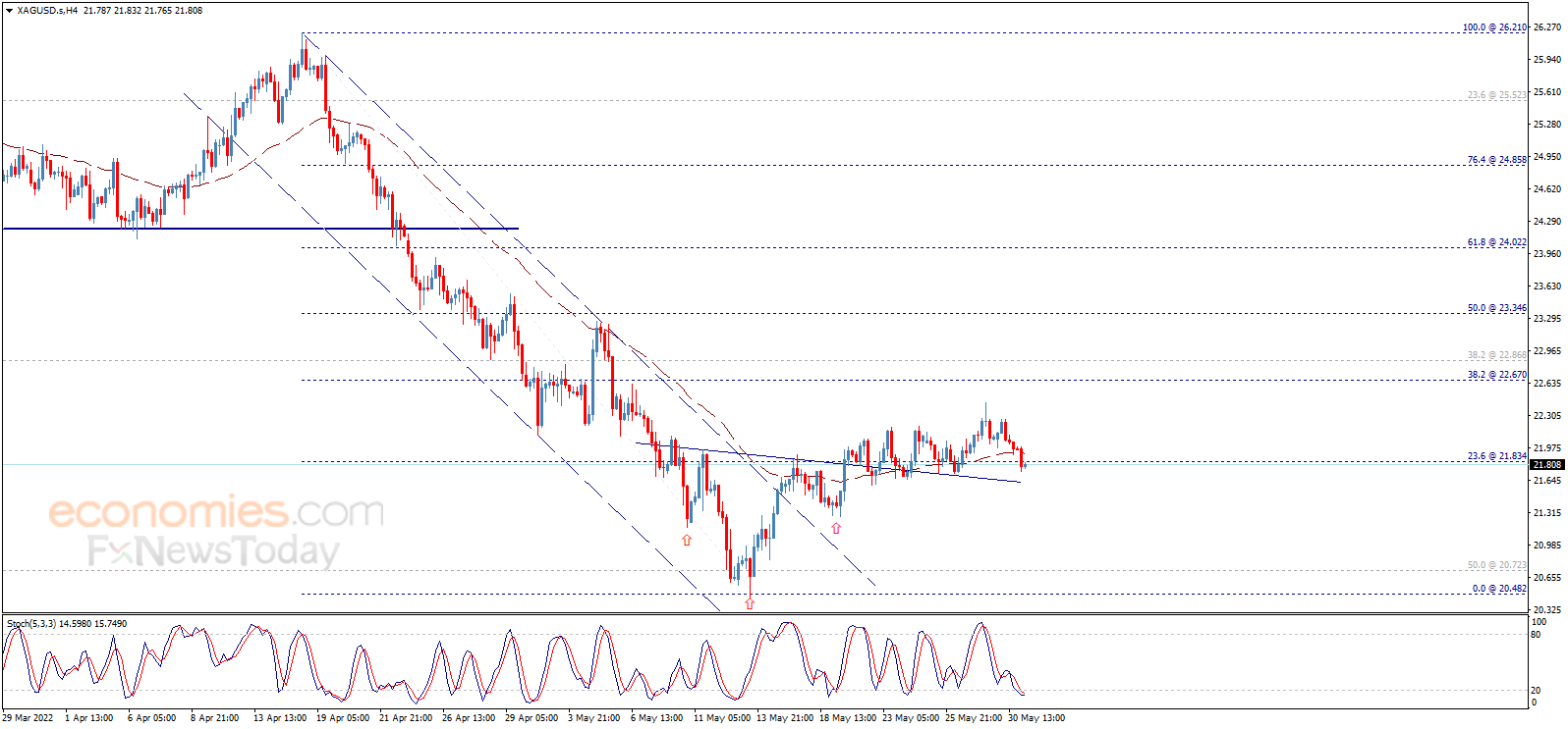 24K99讯 周二(5月31日)亚市尾盘,现货白银温和下跌,银价目前交投在21.90美元/盎司附近。知名财经资讯网站Economies.com周二最新撰文,对日内白银走势进行前瞻分析。