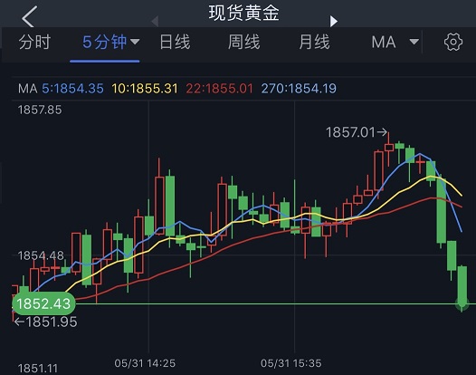 (现货黄金5分钟图 来源:FX168)