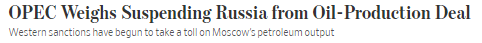 FX168财经报社(北美)讯 周二(5月31日),欧佩克(OPEC)代表说,由于西方的制裁和欧洲的部分禁令开始削弱莫斯科增加石油产量的能力,一些欧佩克成员国正在探讨暂停俄罗斯参与石油生产协议的想法。
