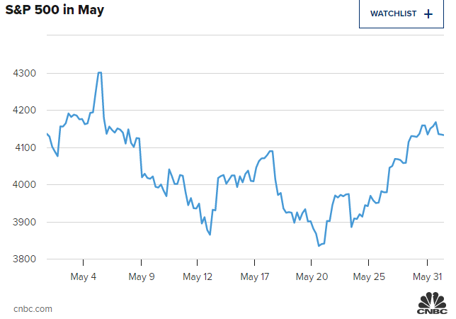 美国股市5月份的表现像坐上了过山车,在大幅下跌之后又强势反弹。道琼斯指数和标准普尔500指数本月收盘时变化不大,受到前一周大幅上涨的支撑。纳斯达克指数当月下跌约2%。