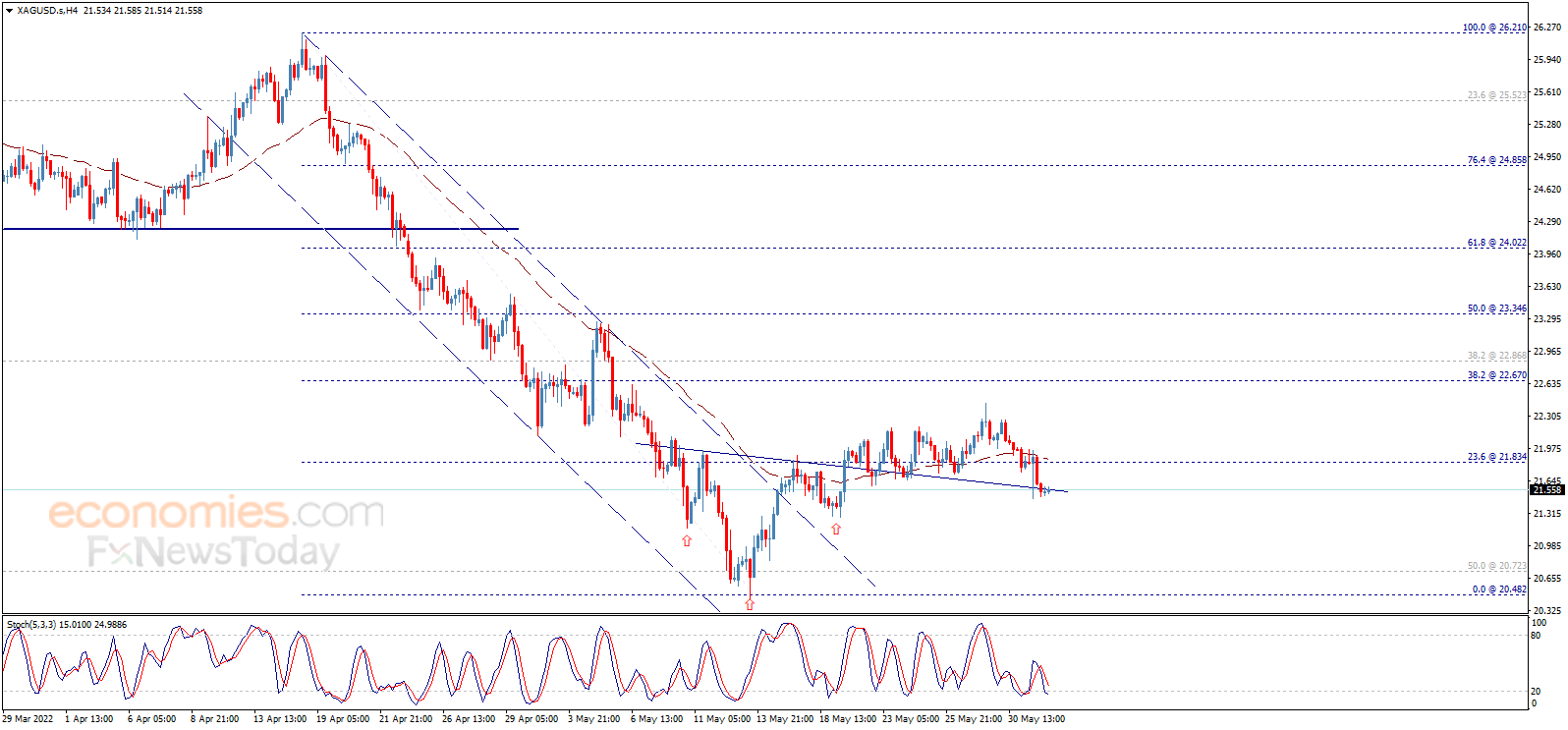 根据Economies.com,假如银价有效跌破21.55美元/盎司,后市恐进一步下跌。