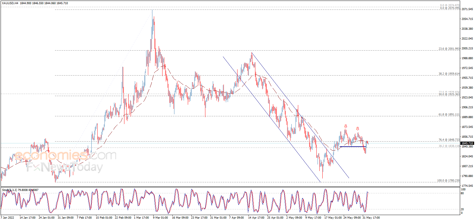 Economies.com预计,今日金价交投将位于支撑位1820.00美元/盎司以及阻力位1865.00美元/盎司之间。