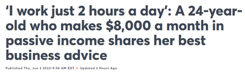 当人们问她如何才能创建一个被动的创收业务时,她总是告诉他们,一开始需要做很多繁重的工作,但从长远来看是非常值得的。