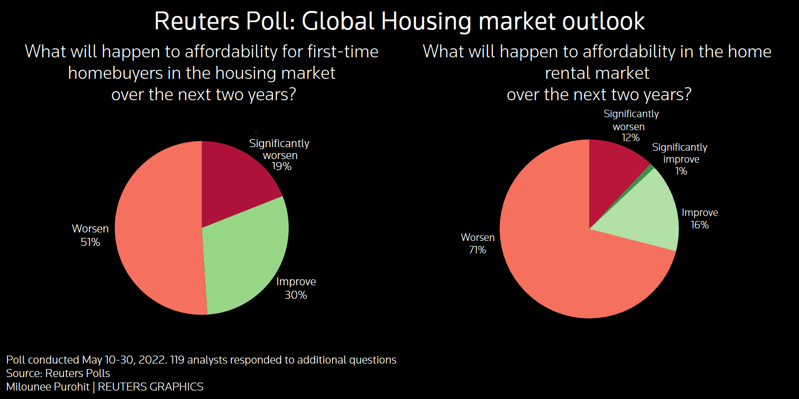 在被问及未来两年房屋租赁市场的负担能力会如何时,超过80%的分析师(99位分析师中有82位)说情况会恶化。其余的人说会改善。