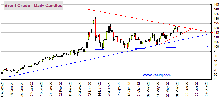 原油方面,Kshitij咨询服务团队表示,布伦特原油期货昨日曾测试110.05美元/桶的低点,随后回升至117美元/桶。短期阻力位在120/125美元/桶,假如无法攻克该阻力,那么布油价格在中期内可能跌至108-105美元/桶。