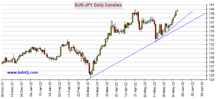 欧元/日元如预期般向140上涨。假如突破140,那么该货币对有望进一步涨向142。