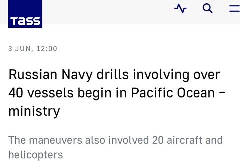 俄罗斯国防部通报称,俄太平洋舰队机舰6月3日至10日期间在太平洋海域启动演习。通报称:“共有40艘战斗舰艇和保障船、多达20架各类飞机参加此次演习。”