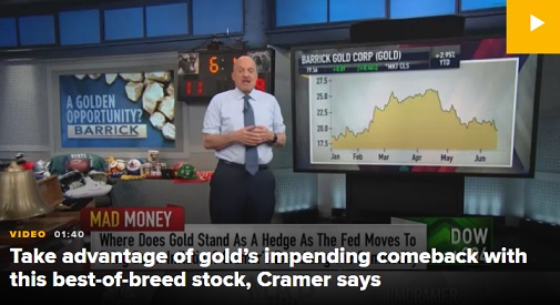 克莱默说,他特别推荐巴里克黄金公司,原因在于他喜欢这家公司的管理、明确的战略和地理上多样化的金矿投资组合。更重要的是,巴里克黄金公司的股息"非常高",股价也相当便宜。