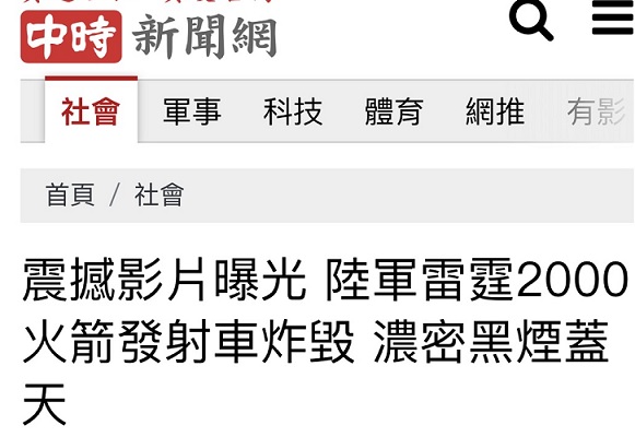 FX168财经报社(香港)讯 据台湾“中时新闻网”6月20日最新报道,当地时间20日上午,台军方一辆“雷霆2000”火箭炮发射车在进行实弹射击时突然爆炸,导致整辆车遭炸毁燃烧。目前台军方已停止训练,并正调查原因。