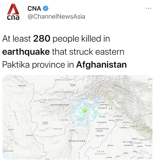阿富汗塔利班临时政府副发言人比拉尔·卡里米在社交媒体“推特”上称:“帕克蒂卡省(Paktika)的四个地区发生了严重的地震,造成数百名同胞伤亡,摧毁了数十座房屋。我们要求所有救援机构立即派遣救援队伍前往灾区,防止灾难进一步恶化。”