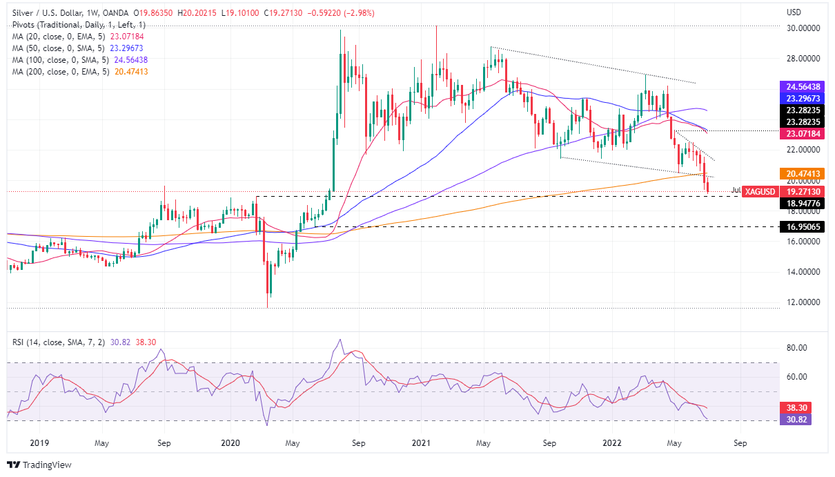 Valencia称,银价已经跌破200周均线,这为银价跌向2020年6月低点(略低于17.00美元/盎司)铺平道路。