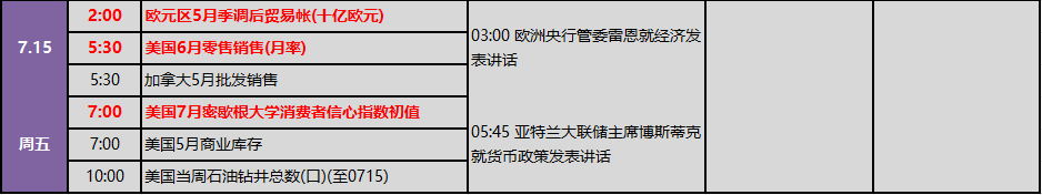 此外,下周美国零售销售以及中国的GDP数据也将对市场产生重大影响。