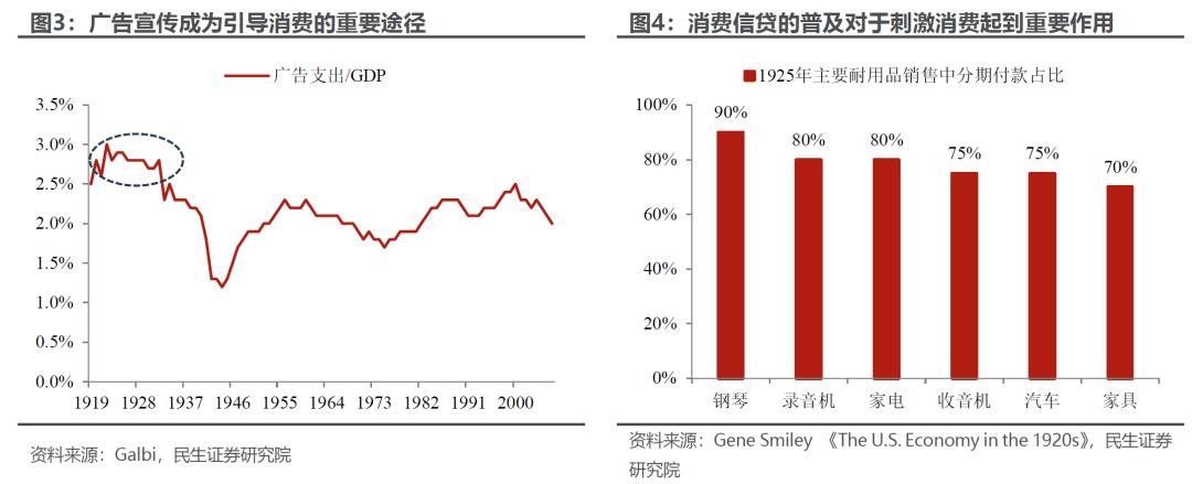 在这样的背景下,叠加消费本身的低起点,以及广告传媒和消费信贷消费等新场景和新形式的推波助澜,消费的繁荣水到渠成。