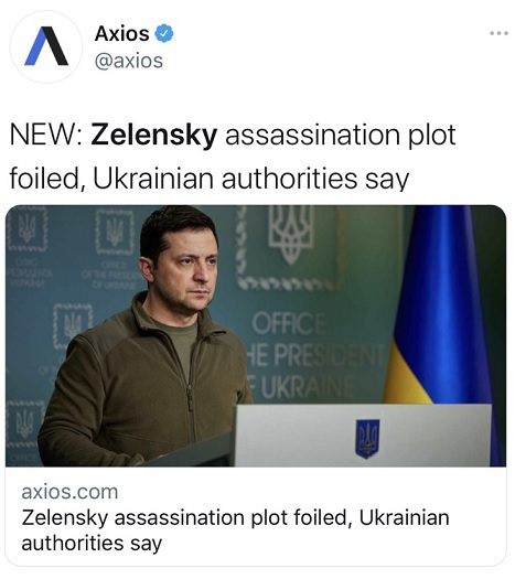 泽伦斯基曾表示,自从俄罗斯入侵乌克兰以来,他将成为暗杀的主要目标。上周四,他警告说,俄罗斯“破坏组织”已经进入基辅,正在追捕他和他的家人。
