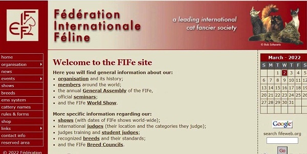 猫科动物国际联合会(Federation Internationale Feline,FIFe)于1949年创立,是一个国家猫注册组织,负责猫品种的认证,共有来自欧洲、南美和亚洲41个国家的43个成员,是世界爱猫大会(World Cat Congress)的成员之一。