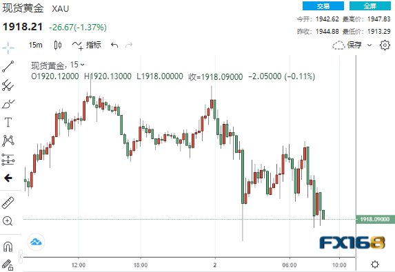 现货黄金短线小幅反弹至1935美元一线,但随后大幅回落逾近20美元,至1916美元一线。