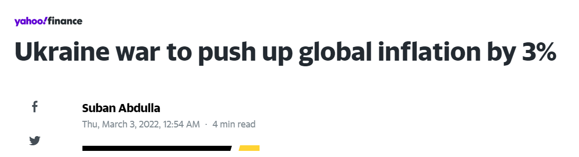 英国国家经济社会研究所(National Institute for Economic and Social Research)估计,乌克兰冲突可能引发另一场供应链危机,导致今年全球GDP损失1万亿美元,并使全球通胀率上升3%。