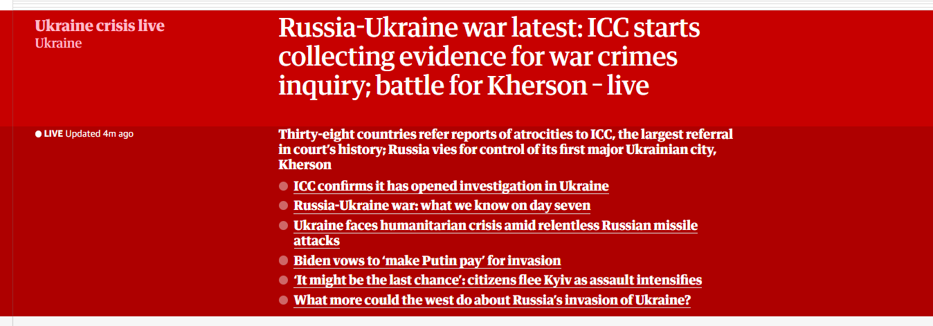 根据英国卫报(The Guardian)报道,依照国际法庭规范,凡是具备会员国资格正式提出报告或事证,检察官便可在不须获得法官核准的情况下展开调查,加速案件进行。此次共有38国针对俄国在乌克兰涉犯的罪行提交报告,是国际法庭史上最大规模。